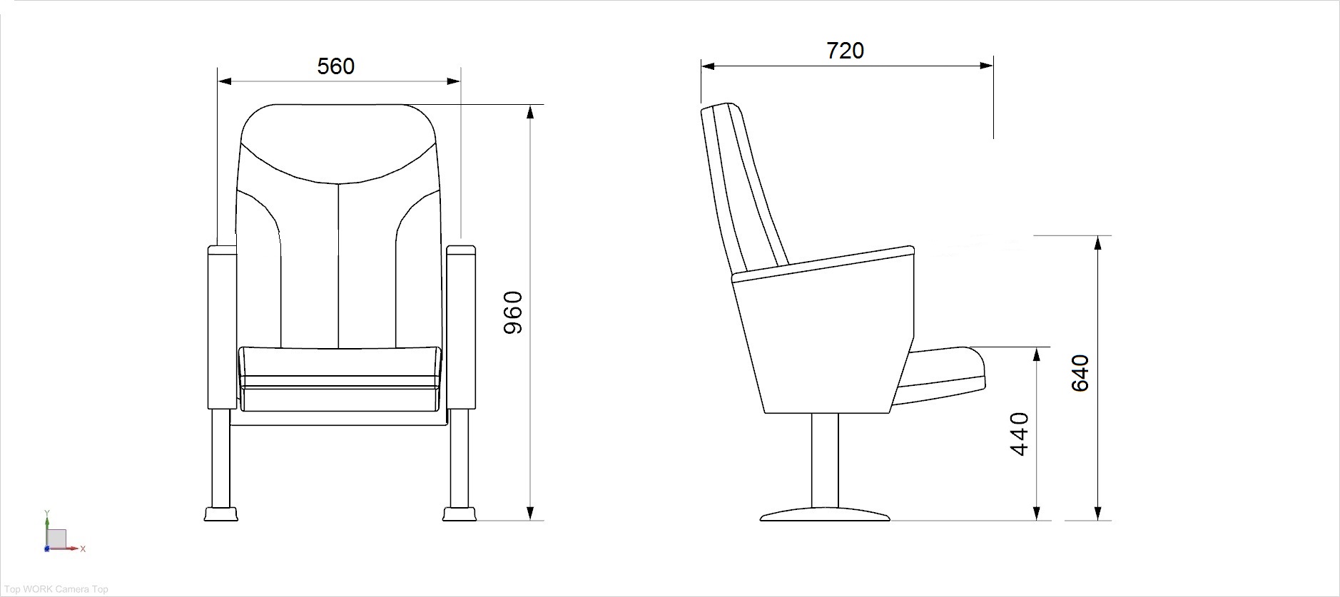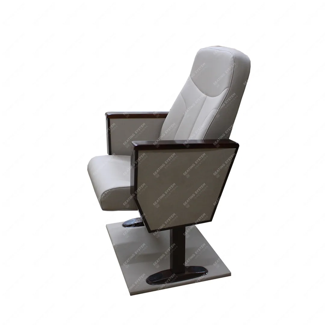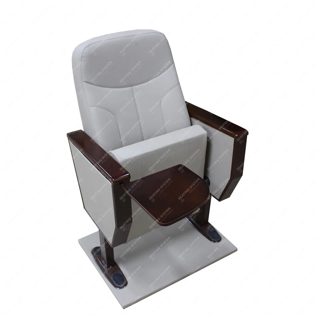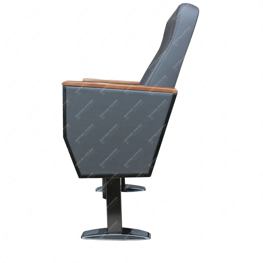 يتم تصنيع الأرجل الجانبية من أنابيب فولاذية مقاس 40 × 60 × 1.5 مم، والأجزاء المثبتة على الأرض مصنوعة من صفائح فولاذية بسمك 2 مم. أسفل مساند الذراعين، توجد لوحة MDF مبطنة بقماش مصفح أو فينيل. يتم تثبيت مساند الذراعين الخشبية المصقولة المصنوعة من مادة الزان وأقراص الكتابة الخشبية المصقولة على مساند الذراعين. تطوى أقراص الكتابة لأسفل (مخفية) داخل الذراع. تشترك المقاعد في أذرع مشتركة فيما بينها. يتم تثبيت المقاعد على الأرض من نقطتين لكل ساق.