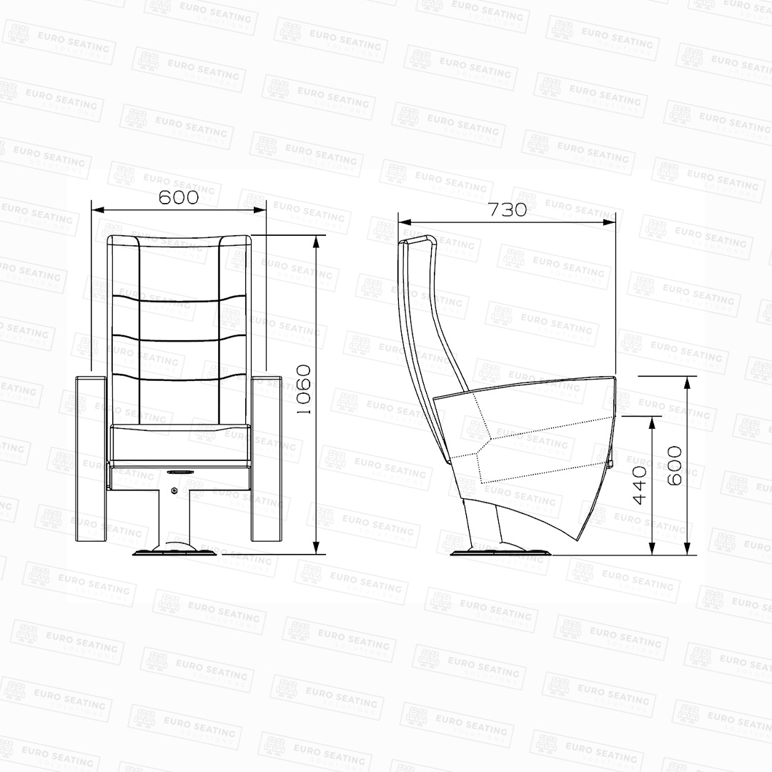 يتم تصنيع أجزاء توصيل القدم من أنبوب بقطر 100 مم وسمك 2.5 مم ويتم تصنيع أجزاء التوصيل بالأرض من صفائح لا يقل سمكها عن 2 مم يتم تشكيلها وتشكيلها بواسطة قوالب. يتم تثبيت مساند الذراع المغطاة بالقماش على الإطار المعدني. يتم وضع حامل الأكواب المعدني في مسند الذراع. يتم استخدام مساند الذراعين بين المقاعد بشكل مشترك ويتم تثبيت المقاعد على الأرض بقدم واحدة.
