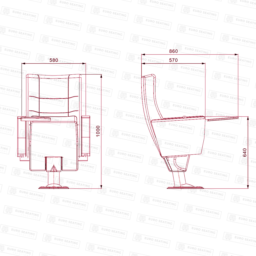 C'est une chaise de conférence pour sièges VIP dans les stades, les salles de conférences de presse, les salles municipales, les conseils locaux et parlementaires, ainsi qu'une chaise pour les salles d'études universitaires et collégiales. C'est l'une des chaises de théâtre et de conférence les plus utilisées, équipée d'une tablette d'écriture.