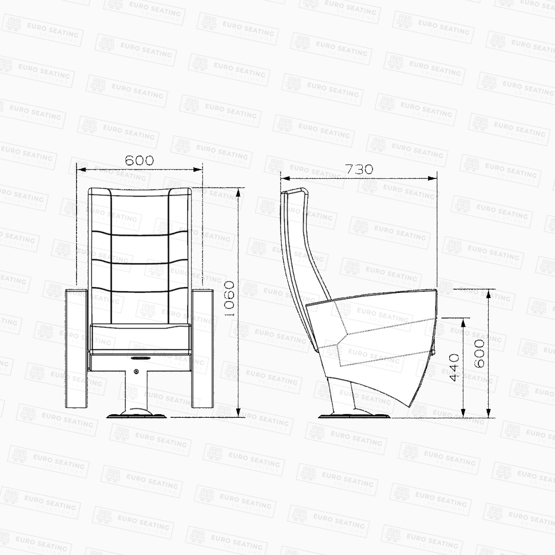 تم تصميم نموذج مقعد السينما لدينا بشكل مريح وله أذرع مغلقة بالكامل. يوجد حامل أكواب على الذراع لوضع المشروبات.