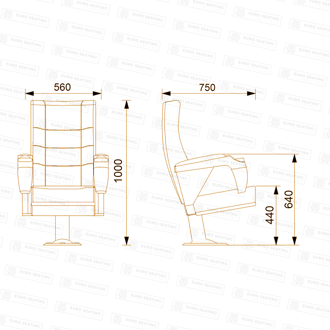 هذا الكرسي هو الأكثر استخداما من قبل مشغلي السينما حول العالم. يتميز بنعومته ومقاعده المريحة ومساند الأذرع المنجدة المصنوعة من نفس القماش المستخدم في الظهر والمقعد حيث تم استخدام أفضل أنواع الأقمشة المستخدمة في كراسي السينما. كما يتمتع حامل الأكواب بمظهر جميل ولا مثيل له.