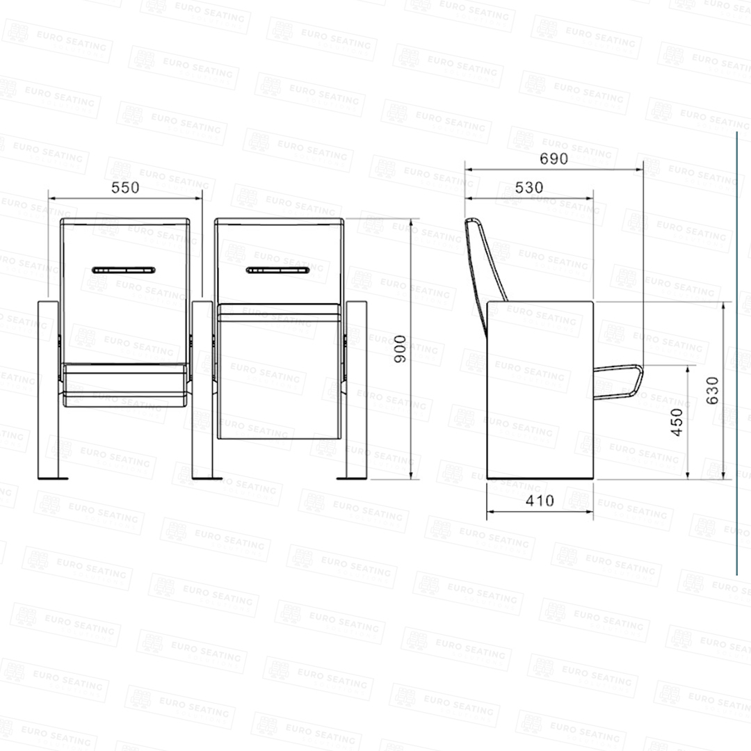 The legs are made of 18 mm mdf material and covered with laminated fabric The armrest is made of polished wooden from beech material. Armrests are covered with laminated fabric. Armrests between the seats are used as a common. The connection of the seat to floor is made by 6 mm sheet material. The seats are fixed to the floor with double legs and suitable fasteners.