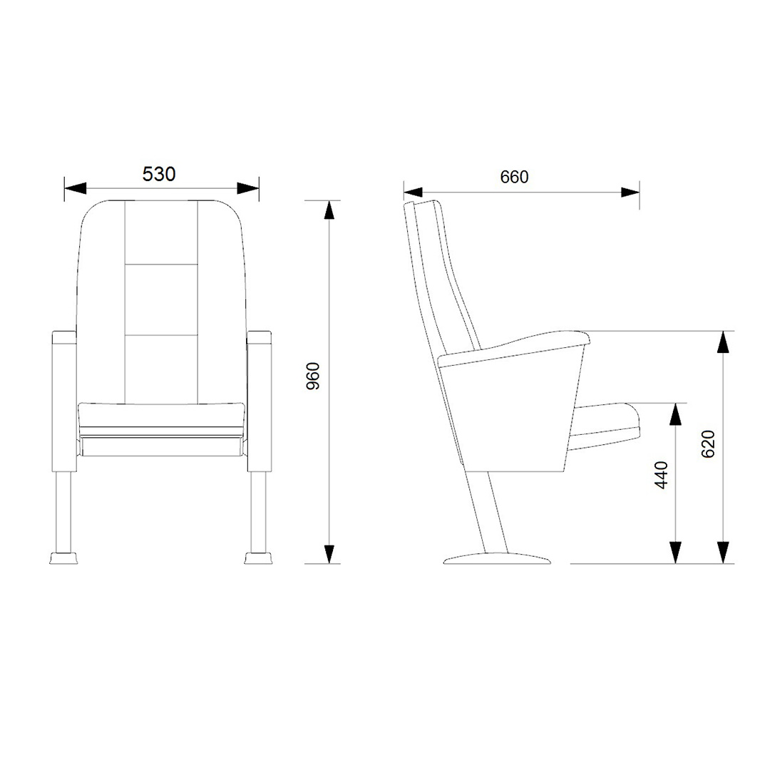 Wooden armrests made of Beech wood are mounted on arms.