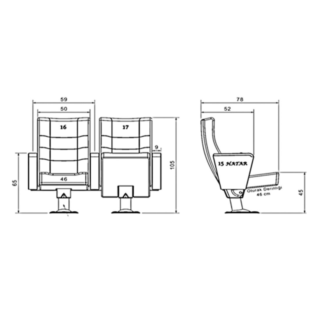 -The armrest boxes of the seats will be made of MDF material. It will be covered with 4mm laminated fabric and will be common between the two seats. A polished wooden armrest made of beech material will be mounted on the armrest frame. The armrests will have an ergonomic structure and appearance.