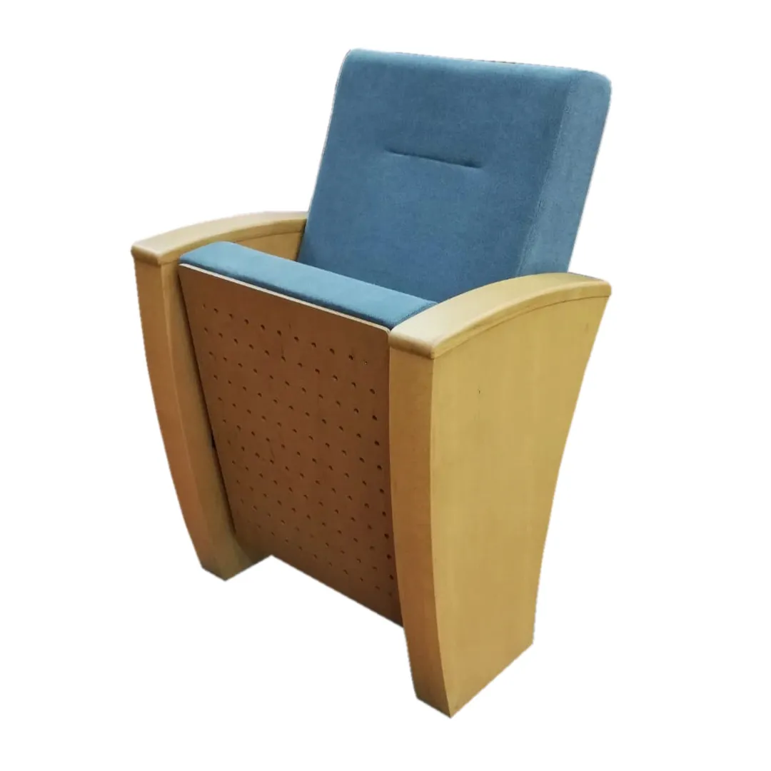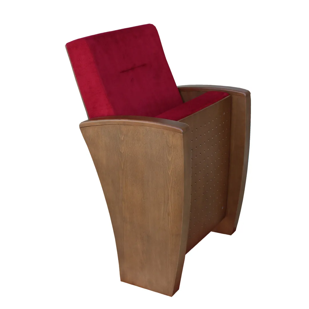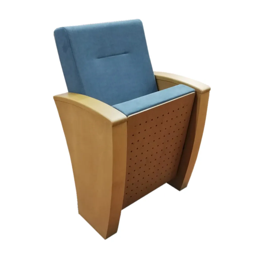 This series of auditorium seats has been intricately designed to meet the requirements of investors and audiences, providing a balance between aesthetics and functionality. It features wooden side panels and plywood back panels for the backrest and seat modules, adding an elegant touch to the overall design and creating a welcoming atmosphere in any space.