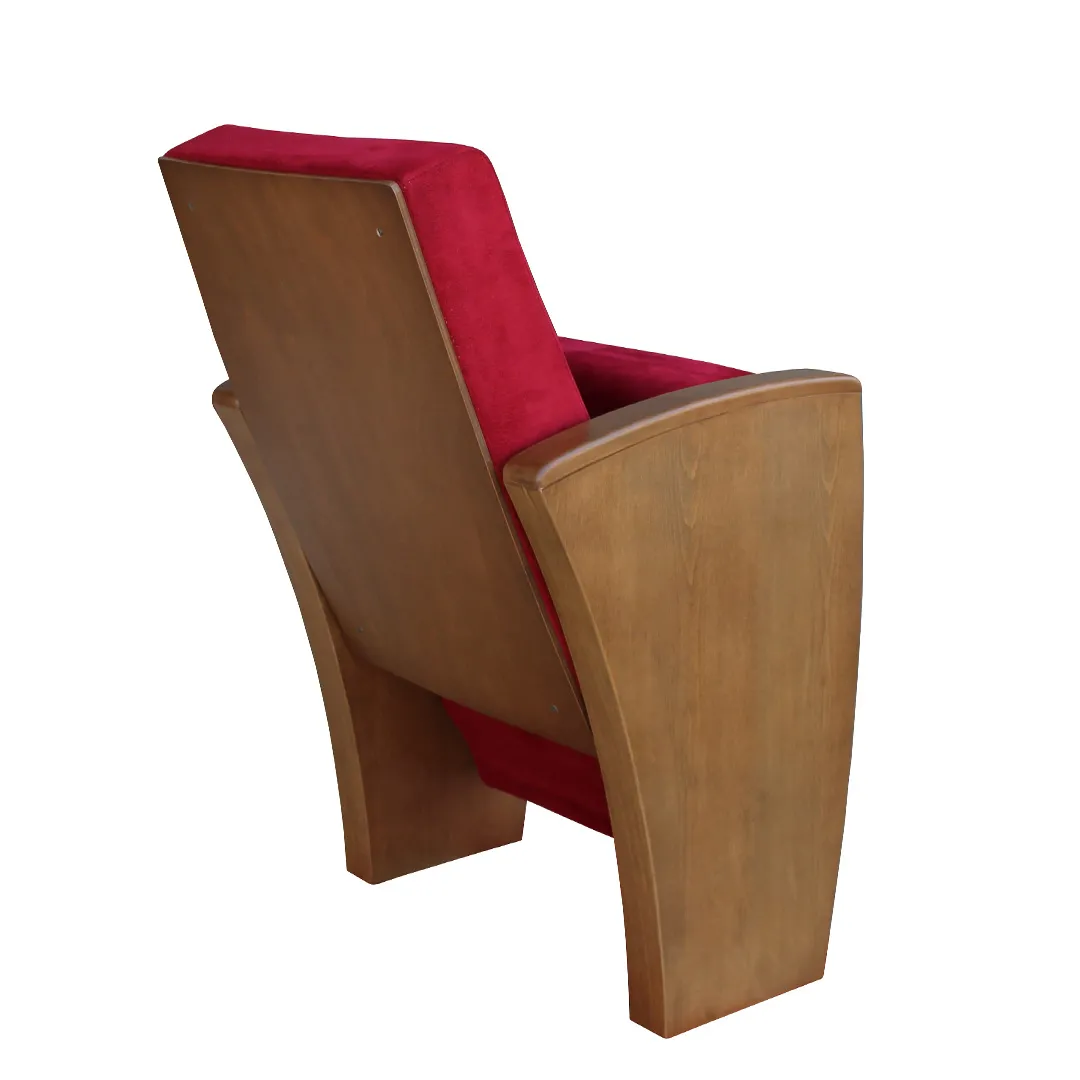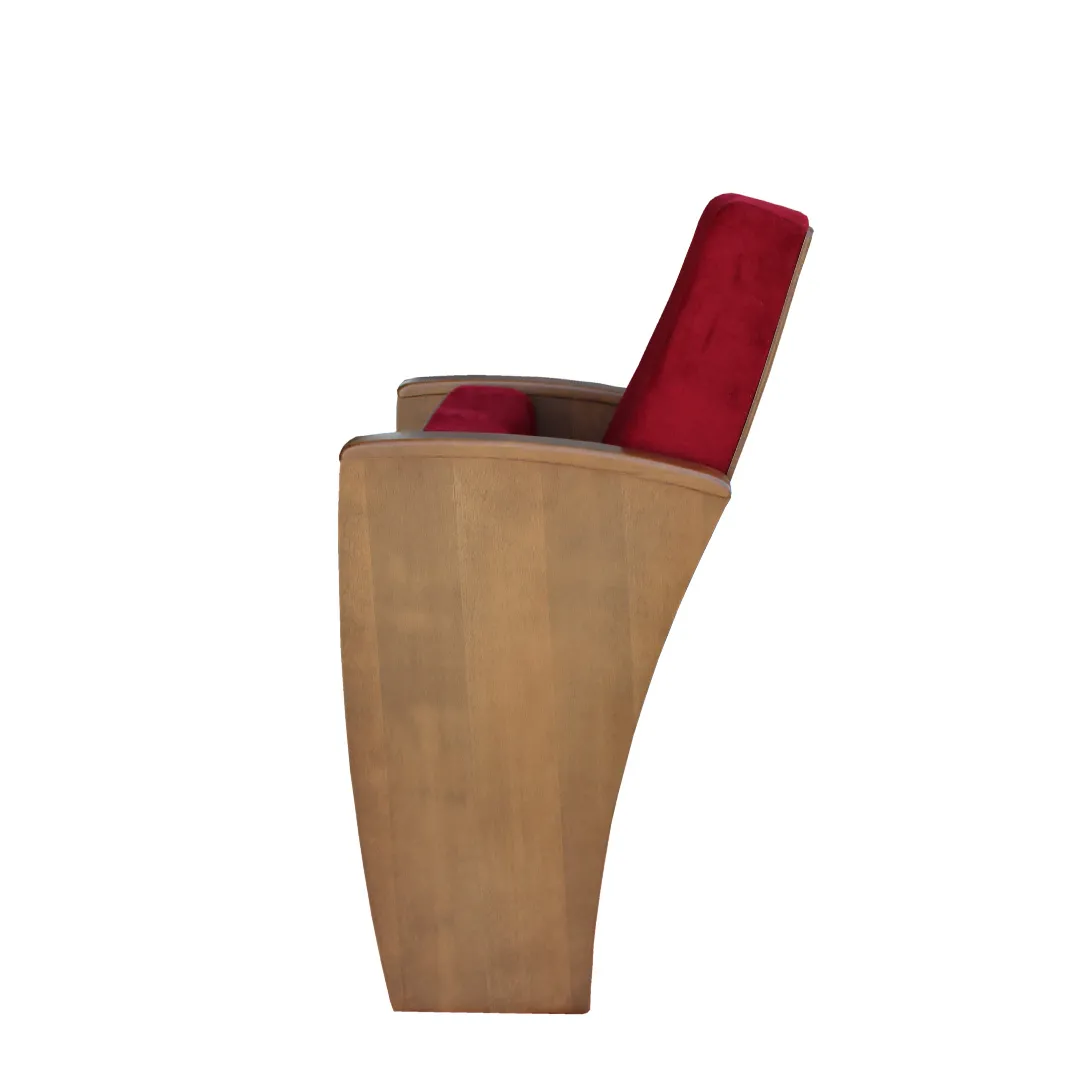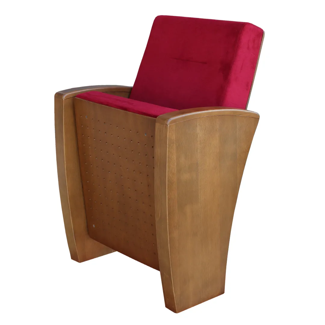This series of auditorium seats has been intricately designed to meet the requirements of investors and audiences, providing a balance between aesthetics and functionality. It features wooden side panels and plywood back panels for the backrest and seat modules, adding an elegant touch to the overall design and creating a welcoming atmosphere in any space.