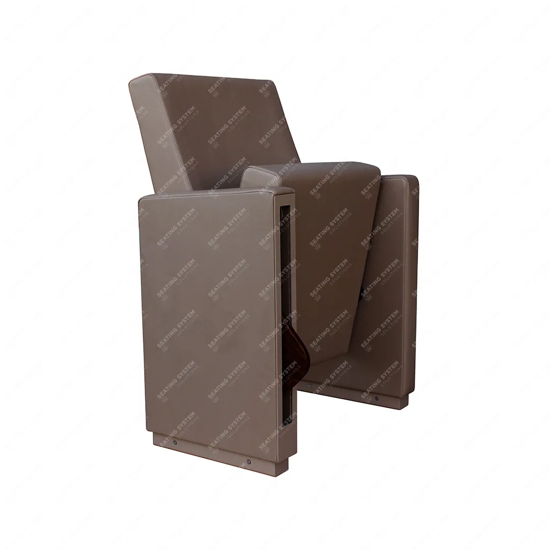 Leg and armrest are made of 18 mm thickness MDF and covered with fabric or leather. The anti panic table is made of wood. Armrests between the seats are used as a common. The connection parts of the seats to the floor are made of 6 mm thick metal part. The seats are fixed to the floor with double legs and suitable fasteners.