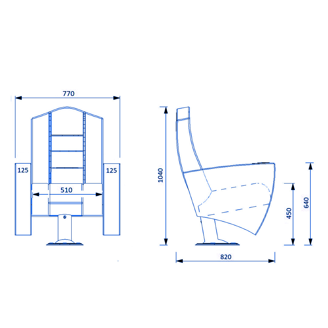 The foot connection parts are manufactured from pipe with a diameter of 100 mm and 2.5 mm thickness and the connection parts to the floor are made of at least 2 mm sheet which is shaped and formed by molds. Fabric covered MDF armrests are fix on the metal frame. Armrests will be fabric upholstered. Armrests between the seats are used as a common and seats are fixed to the ground with single foot.